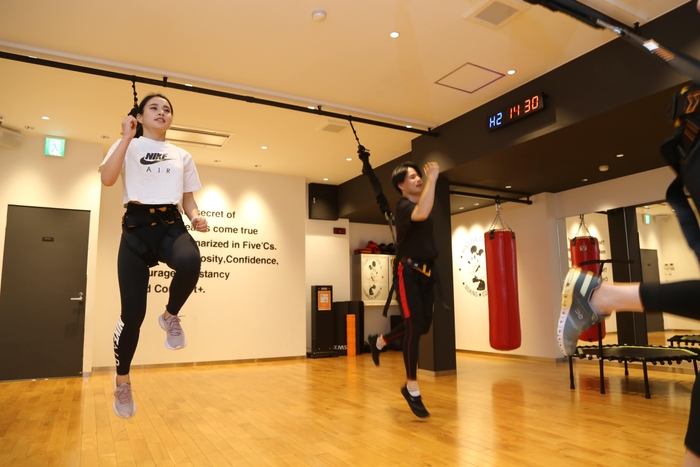 B-macは、筋トレはたったの20分、有酸素運動(ボクシング、トランポリン、名古屋発のバンジースーパーフライ等)を楽しみながら20分、最後は、代謝アップマシンどの至福のリラクゼーション20分です。