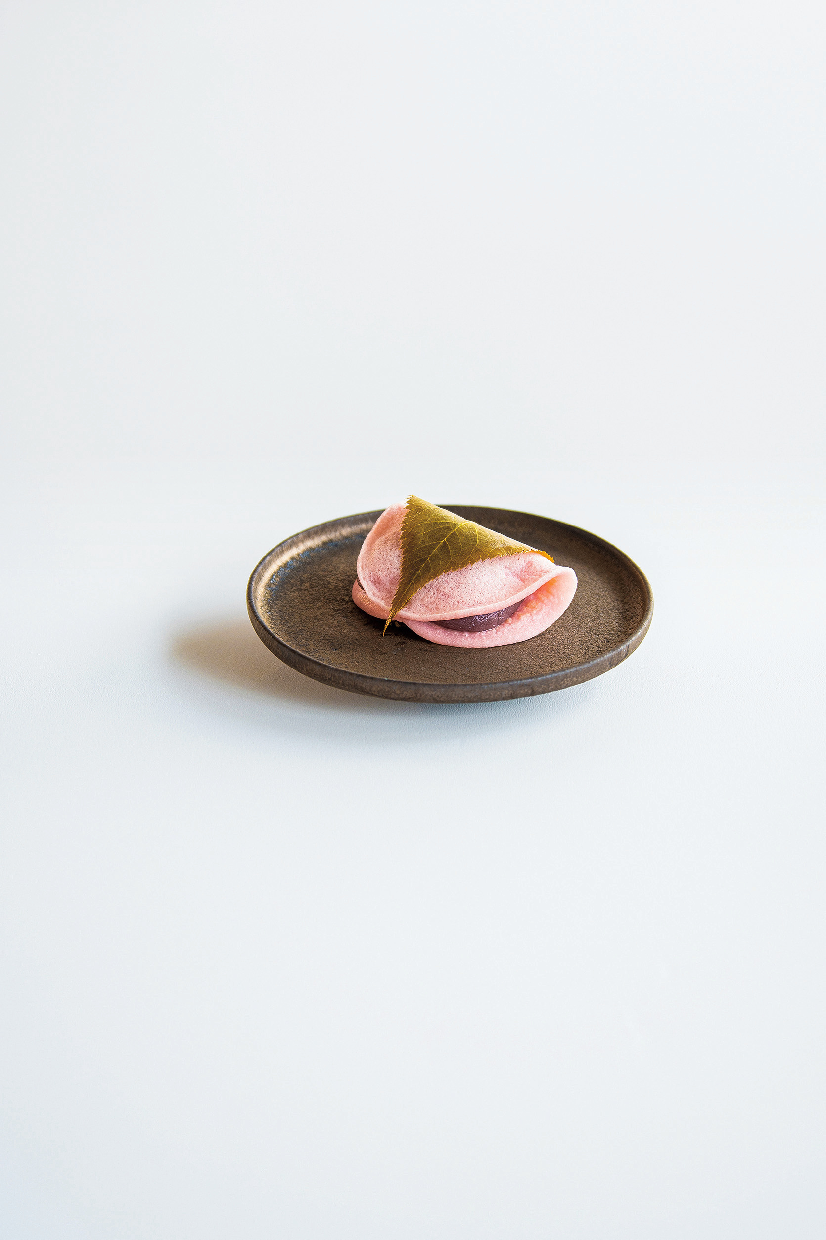 なめらかなこし餡を包んだ桜もち。塩漬けにした桜葉の優しい甘みが魅力。