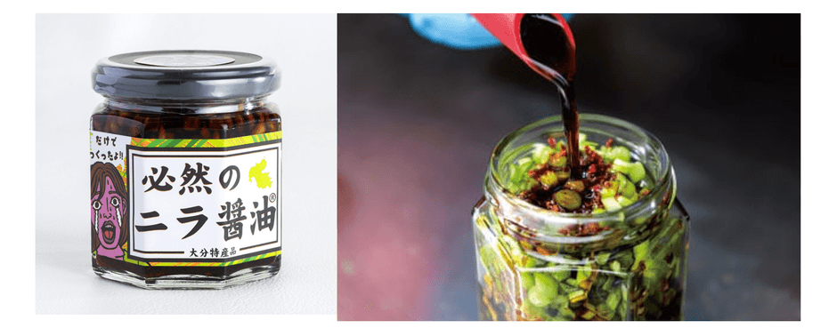 必然のニラ醤油は、大分でラーメン屋を経営する株式会社LogStyleが開発した商品です。大分県は全国でも上位のニラ出荷量を誇り、西日本を代表する「ニラ」の産地です。経営するラーメン屋では、ニラを使用した辛麺が主力で、メニューで使用しないニラの茎の部分は、本来は食べられる部分ですが何の疑問も持たずロスし続けていました。それを従業員のアイデアから商品にしようという話になり、ちょっとしたアイデアと工夫から「ニラ醤油」が生まれました。偶然生まれたが必然の美味しさのニラ醤油は、大分から全国、そして世界へ広がっていっています。