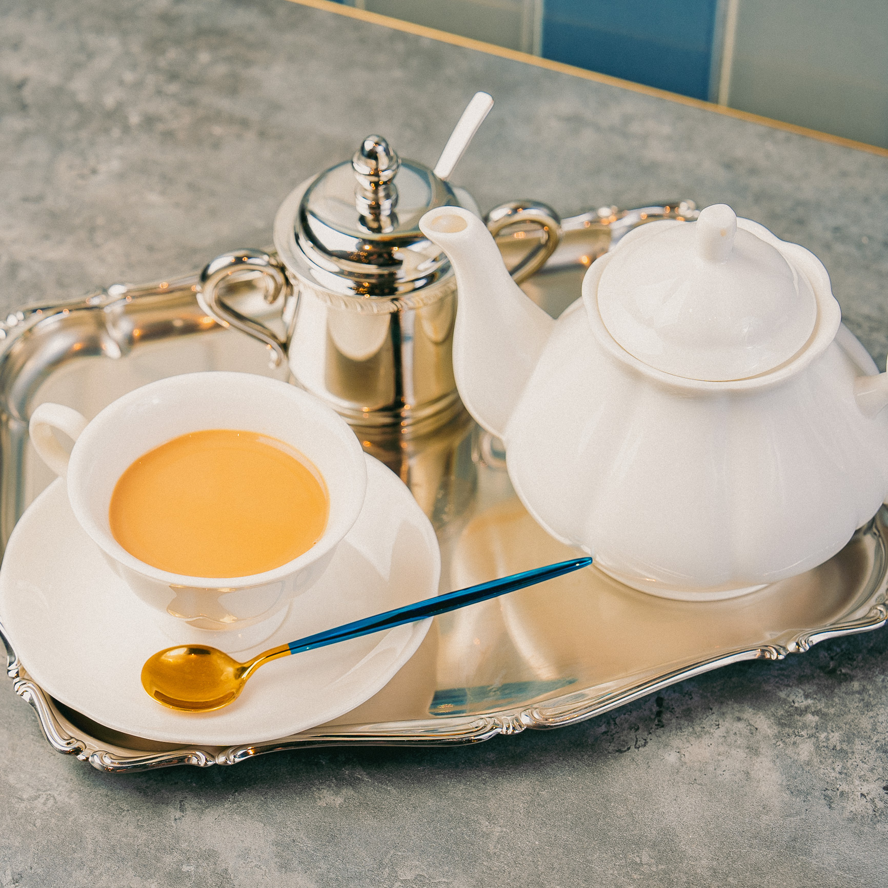南インド、ニルギリ産の高級茶葉を使用した希少な英国式ロイヤルミルクティーを採用。