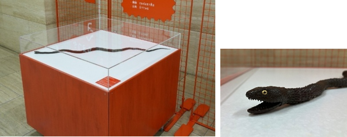 1分おきに動態展示台上の自在蛇のレプリカが動きます。