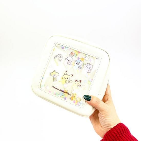 まずは、ポケピースのほしぞらシリーズのボックスポーチからご紹介します。アイボリーで落ち着いたトーンのポーチなので大人でも使いやすいアイテムです。