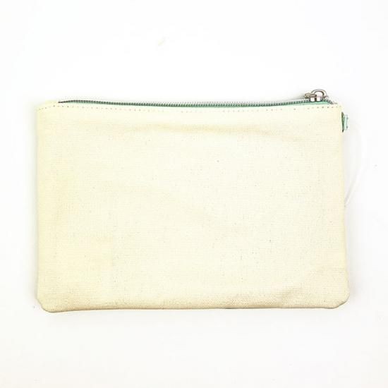 お次は、こちらのフラットポーチをご紹介します。爽やかなグリーンとお花の大人っぽいデザインが印象的なこのポーチ。