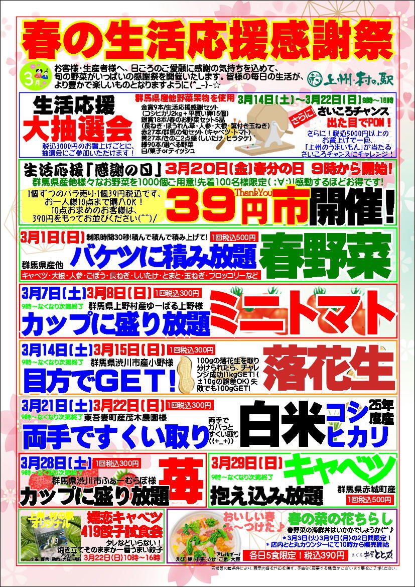 \安さも楽しさも限界突破!/ 群馬の旬で家計応援! 上州・村の駅「春の生活応援感謝祭」を3/1より開催! この春“ワクワク・おいしい新発見”がここにある。