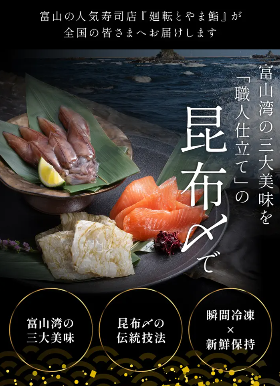 本プロジェクトは、新鮮な海の幸と富山ならではの旬のネタが楽しめる「とやま鮨」の味を、全国のご家庭で気軽に楽しんでいただくために企画しました。Makuake限定の特別な商品をご用意しています。