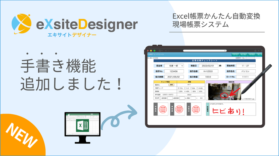 製造業向け「帳票電子化システムeXsiteDesigner」に新機能 ~手書き入力でさらに便利に~