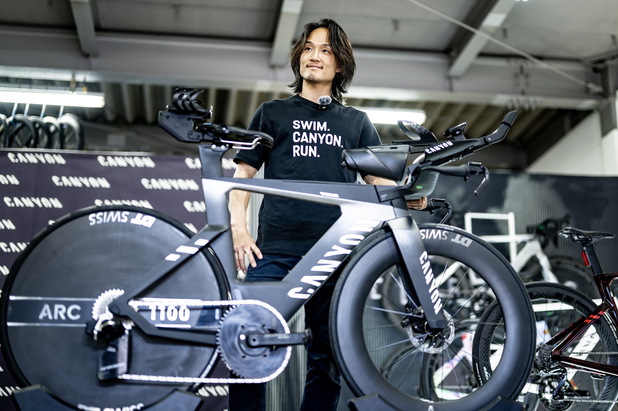 キャニオンブースでは、トライアスロンバイク「スピードマックス」シリーズを展示・試乗可能です。