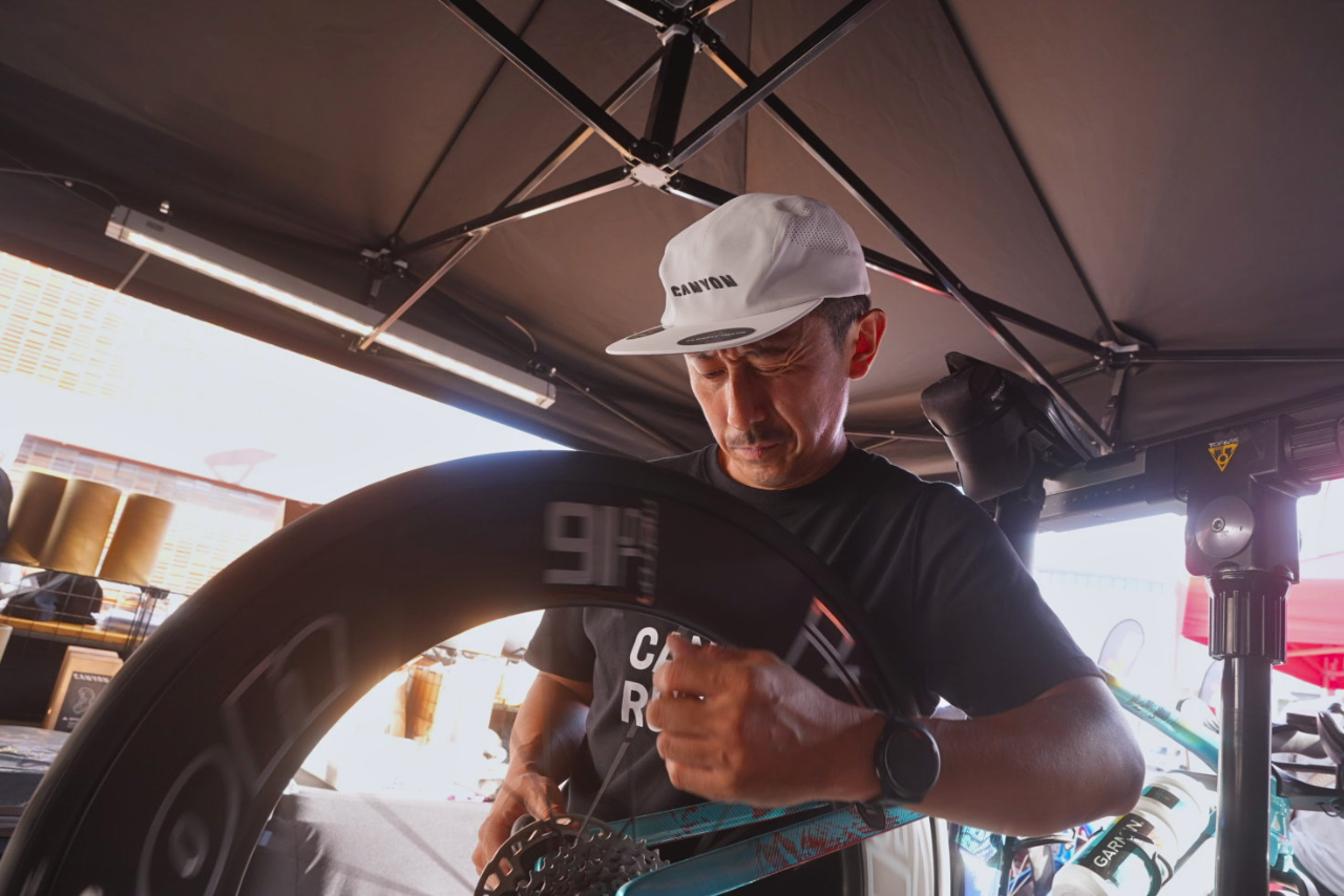 キャニオン認定サービスパートナー、東京都世田谷区のバイクショップ「エフェクト」のメカニック・日比谷氏が帯同し、トライアスリートをサポートします。