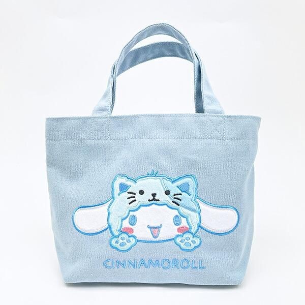 まずはシナモロール(ネコ)のミニトートバッグからご紹介。サイズ:19cm×30cm×10cmでランチトートやサブバッグとして活躍間違いなしのサイズ感です。にゃー!と鳴き声が聞こえてきそう。