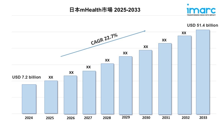 IMARCグループの最新レポートによると、「日本のmHealth市場規模は72億ドル2024年には市場規模が514億ドル2033年までに成長率を示し(CAGR)22.7%2025年から2033年の間に。」