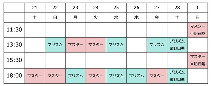 ※2月28日(土)昼夜公演と3月1日(日)昼夜公演は、野口準さんと明石陸さんが入れ替わります。