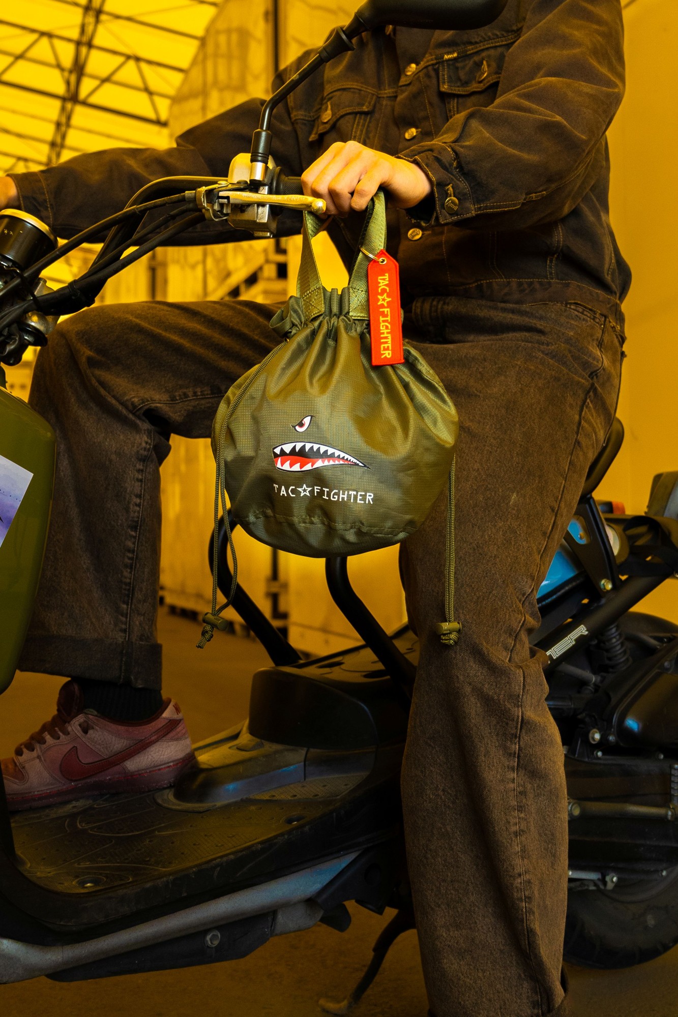 タグにはブランドロゴ「TAC☆FIGHTER」と、ブランドスローガン「ARE YOU READY?」がデザインされています。