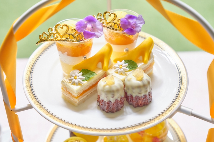 プリンセスパフェ~トロピカル&ココナッツ~ / オペラ~マンゴー&パッションフルーツ~ / レモンのカヌレ / シャンパンジュレのパンナコッタ~パイン&パッションフルーツ~ / レモンのマカロン / タルトシトロン/ マリーの愛したクグロフ風マンゴームース / ワッフル / プレーンスコーン / マーマレード