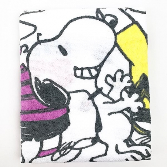 嬉しそうな表情のスヌーピーやフレンズのデザインも登場。お風呂上がりだけでなく、タオルケットとしても使えちゃいます。