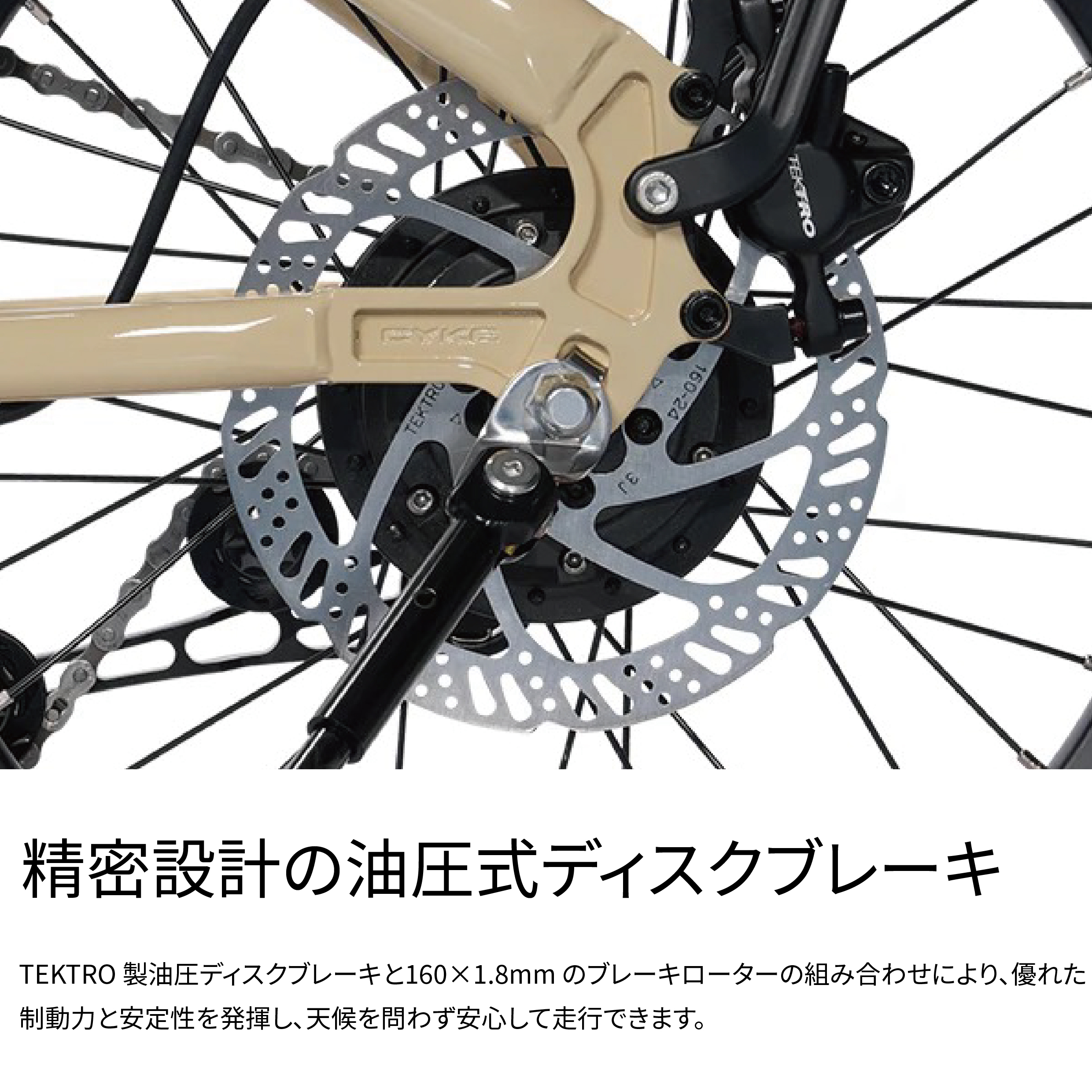 さらに高耐久の油圧ディスクブレーキの使用により、雨天時でも安定した制動力を発揮します。