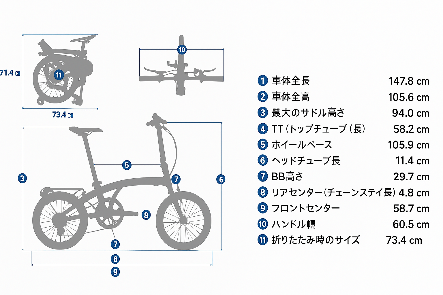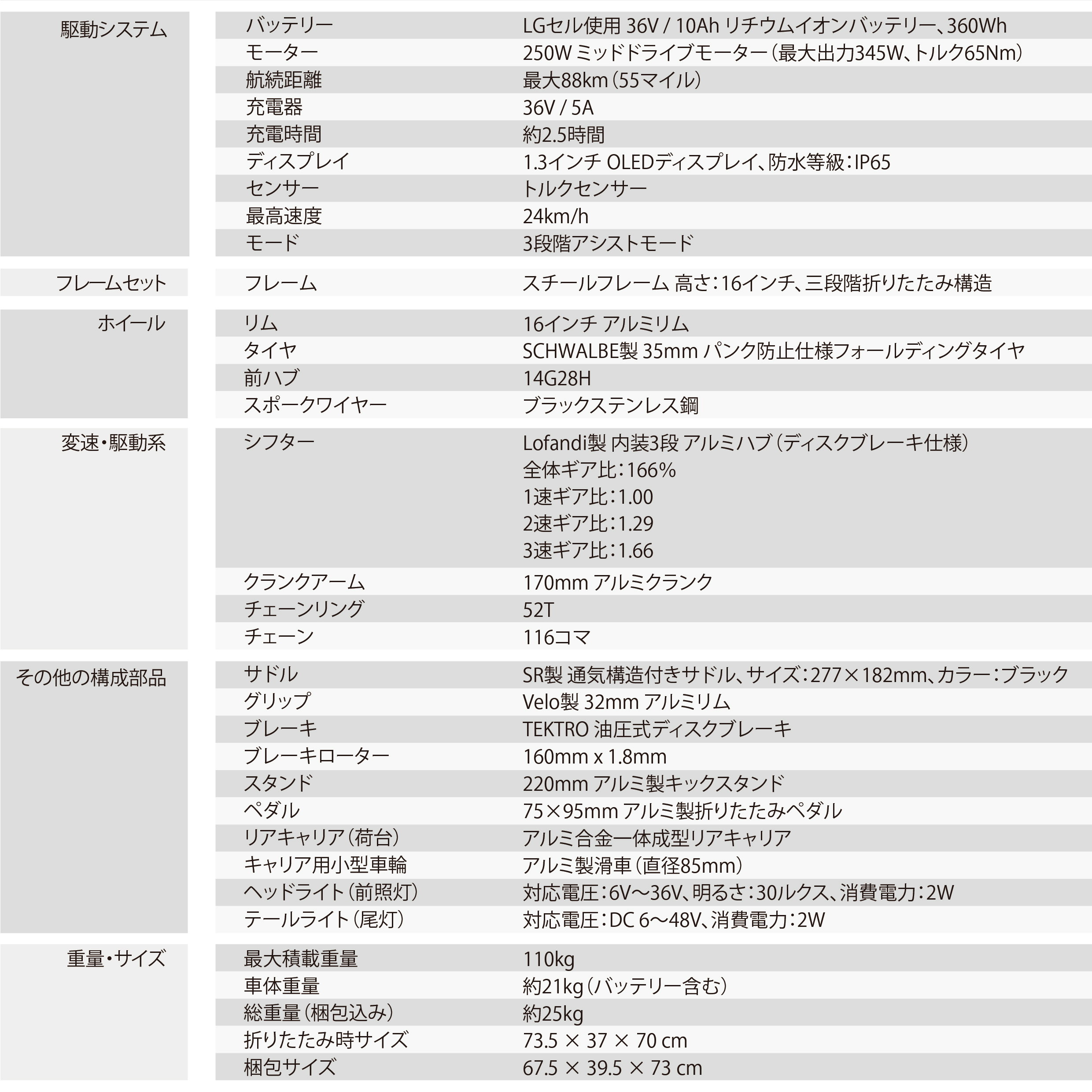 一般的な折りたたみ自転車よりもさらに小さく、約73cm × 37cm × 70cmというサイズに収納可能。