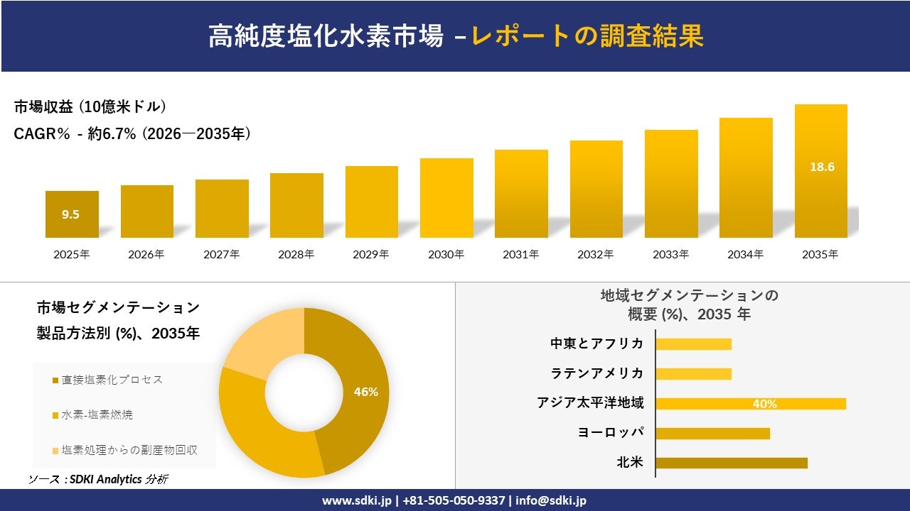 提出日 (2026年03月30)、SDKI Analytics(本社:渋谷区、東京都)は、2026年と2035年の予測期間を対象とした「高純度塩化水素市場」に関する調査を実施しました。
