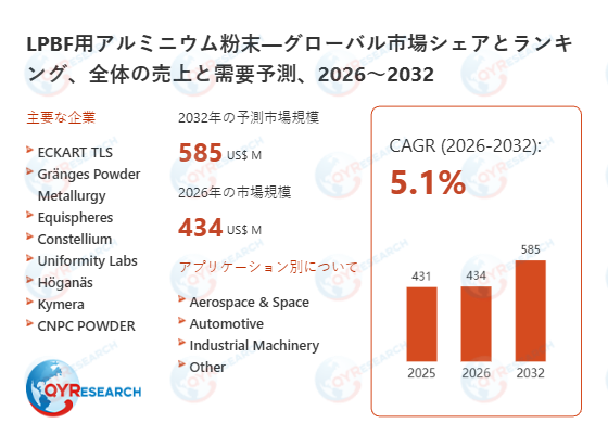 上記の図表/データは、QYResearchの最新レポート「LPBF用アルミニウム粉末―グローバル市場シェアとランキング、全体の売上と需要予測、2026~2032」から引用されている。