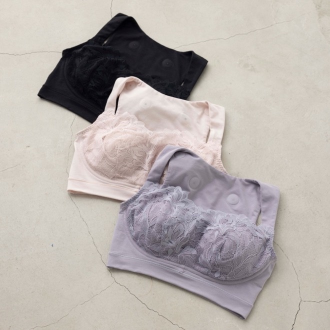 本シリーズは、磁気の働きでコリをほぐす機能性に加え、レースをあしらった上品なデザインと、日常に寄り添う快適な着用感を兼ね備えたLUXEラインです。