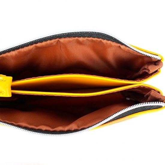 続いては、3ポケットポーチです。フラットなフォルムで使いやすく、3つに分かれているので仕分けもできて便利なんです。
