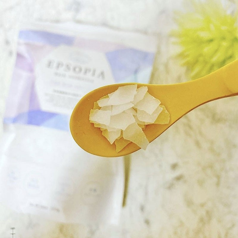 また『エプソピア』は、こだわり抜いた特殊製法を用いた結晶タイプのバスソルトで、風呂釜の故障の原因となる塩分(ナトリウム)を99.5%以上を取り除いている為、追い焚きや、残り湯を洗濯に使用可能です。通常バスソルトは追い焚き機能が使用できない為、『エプソピア』は安心して毎日の温活を続けることができる商品となります。