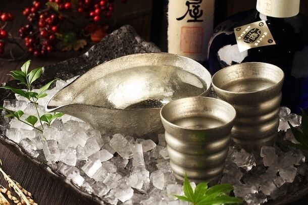 銀座方舟では「新潟県弥彦産 鎚起銅器 清雅堂」や「富山県高岡産 高岡鋳物 能作」など伝統工芸の鎚起銅器(ついきどうき)や錫(すず)の酒器を使用しています。