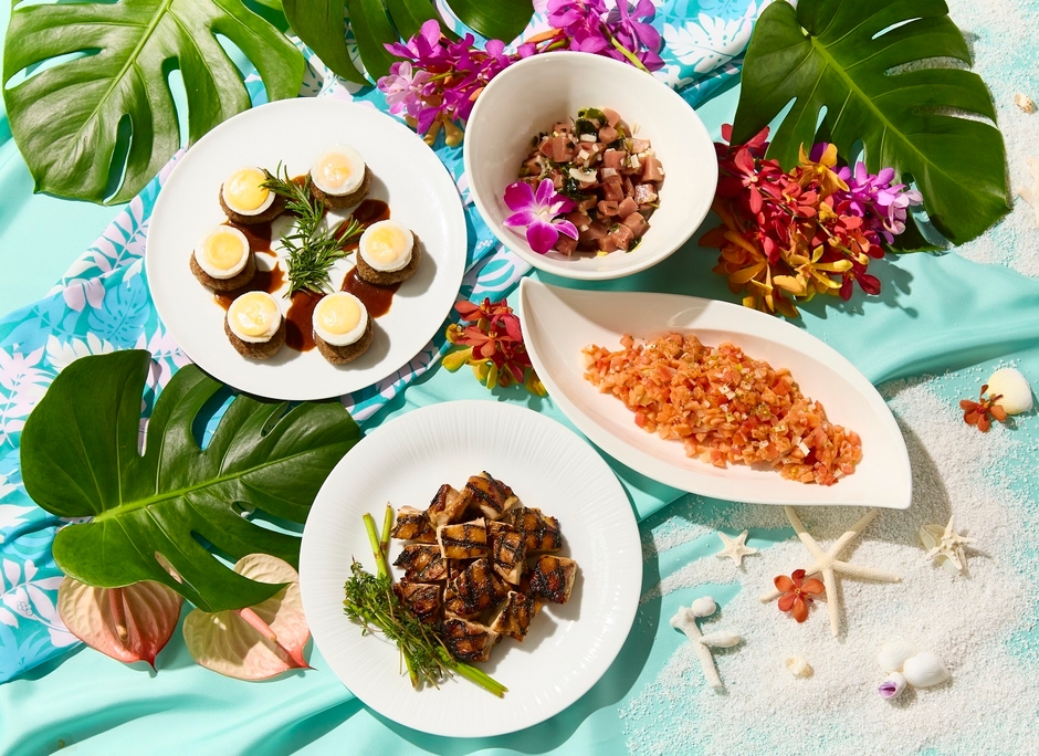 マリオット・インターナショナルの姉妹ホテル「シェラトン・カウアイ・リゾート」のエグゼクティブシェフGabriel Balenzuelaが監修した、ハワイの本格的な料理をフルブッフェ形式でお楽しみいただけます。レストラン店内もカラフルな装いで、まるでハワイを旅したような気分を味わっていただけます。ロコモコやアヒポキ、ロミロミサーモンなどハワイならではの料理を、トロピカルカクテルやノンアルコールカクテルと共にお楽しみいただけます。