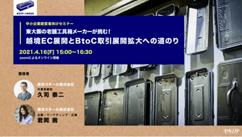 本セミナーでは、企画担当者一名で、ブランド戦略の立案からホームページのリニューアル、それに伴う資金調達、越境ECの開始まで漕ぎつけた東大阪の工具箱メーカー・東洋スチールにご登壇いただきます。これまでBtoB取引がメインであった販売戦略を見直し、自社ECサイト立ち上げによる越境EC展開と、BtoC取引拡大へチャレンジした過程、ブランド戦略に基づいたホームページリニューアル、ヒト・カネ・時間が少なくてもできるSNS戦略についてお話いただきます。質疑応答の時間もあります。是非ご参加ください。
