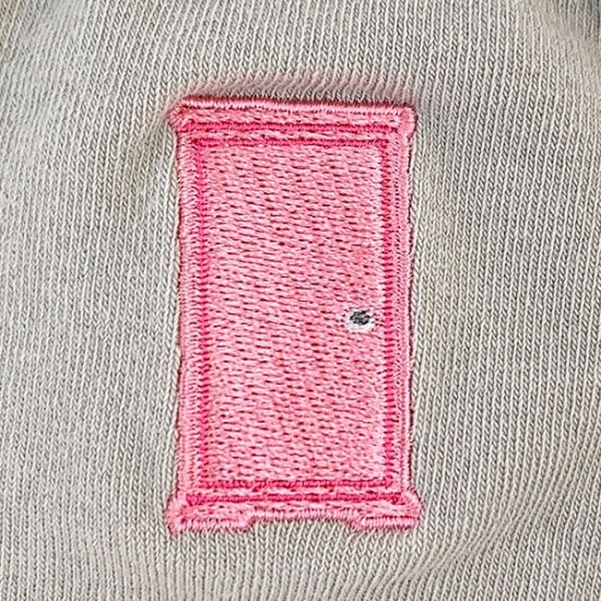 グレー地にはピンクのどこでもドアの色味がピッタリ。