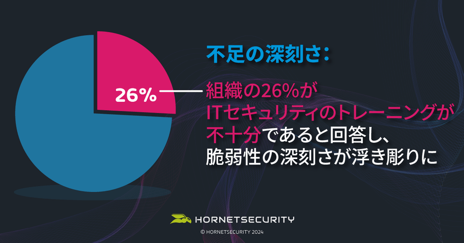 欧州のサイバーセキュリティのリーダー企業、Hornetsecurityグループ傘下のVade(本社:フランス・リール、読み方:ヴェイド、URL: https://www.vadesecure.com/ja/ )は、Hornetsecurityがこのたび、セキュリティトレーニングに関する調査結果「Company IT Security Awareness(企業のITセキュリティに対する認識)」を発表したことをお知らせします。本調査はHornetsecurityが2024年4月に実施し、IT部門の意思決定者をはじめとした世界中の業界プロフェッショナル144名から回答を得ています。調査結果は、Hornetsecurityが出展する情報セキュリティカンファレンス「Infosecurity Europe 2024」で発表されました。