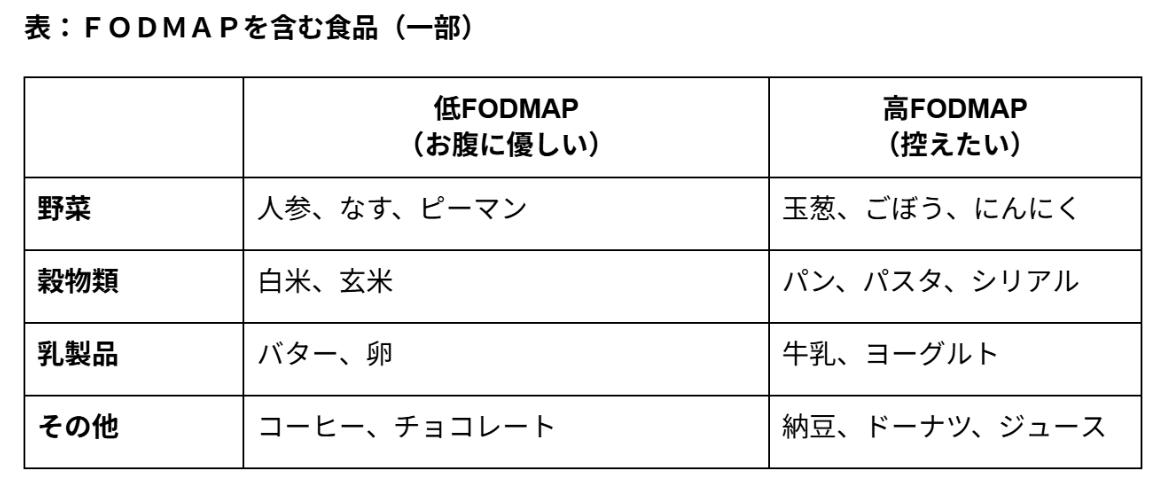 つまり、高FODMAPの食事を避ける場合も、数週間単位で様子をみる必要があります。