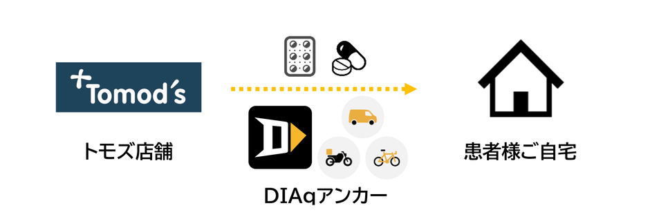 シェアリングエコノミー配送アプリ「DIAq(ダイヤク)」 調剤併設型ドラッグストア「トモズ」を展開する 株式会社トモズと連携 2022年2月1日に開始する同社の処方薬配送の実証実験で 当日配送サービスを提供