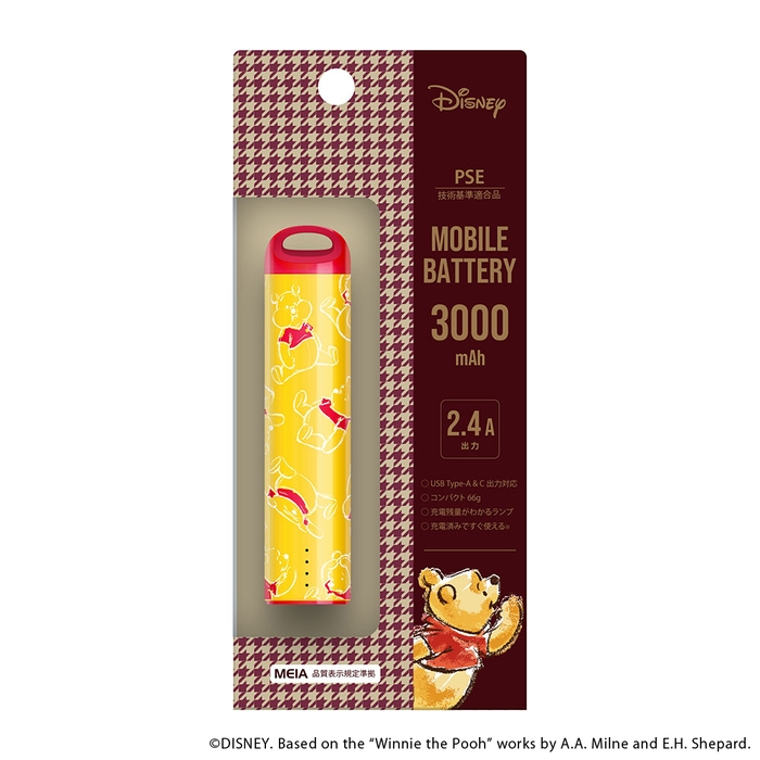 ディズニーキャラクターデザインの軽量コンパクトでポーチにも収まるスティック型モバイルバッテリー 3,000mAhです。USB type-A/Type-Cポートでの出力対応・2台同時充電も可能です。また、スマートフォン本体を充電しながらモバイルバッテリーも充電できるパススルー充電に対応しています。お手持ちのストラップを付けて落下を防止できる便利なストラップホール付き。充電済みですぐ使える(※満充電ではありません。)。PSE適合商品。