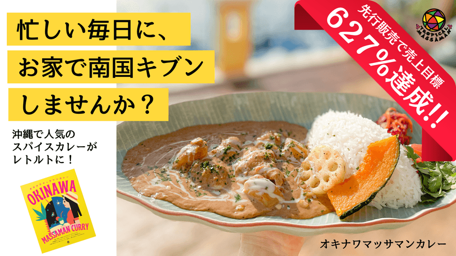 ~「Makuake」での先行販売で目標金額の627%を達成! 沖縄発・スパイスやココナッツミルクを贅沢に使用した リゾート感あふれるレトルトカレー~