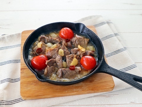 千葉県は日本の酪農発祥の地であり、銘柄牛肉「チバザビーフ」が特産です。牛肉とミニトマトのうま味に「鮮度生活 特選丸大豆しょうゆ」で作った香ばしいにんにくしょうゆの風味が食欲をそそります。