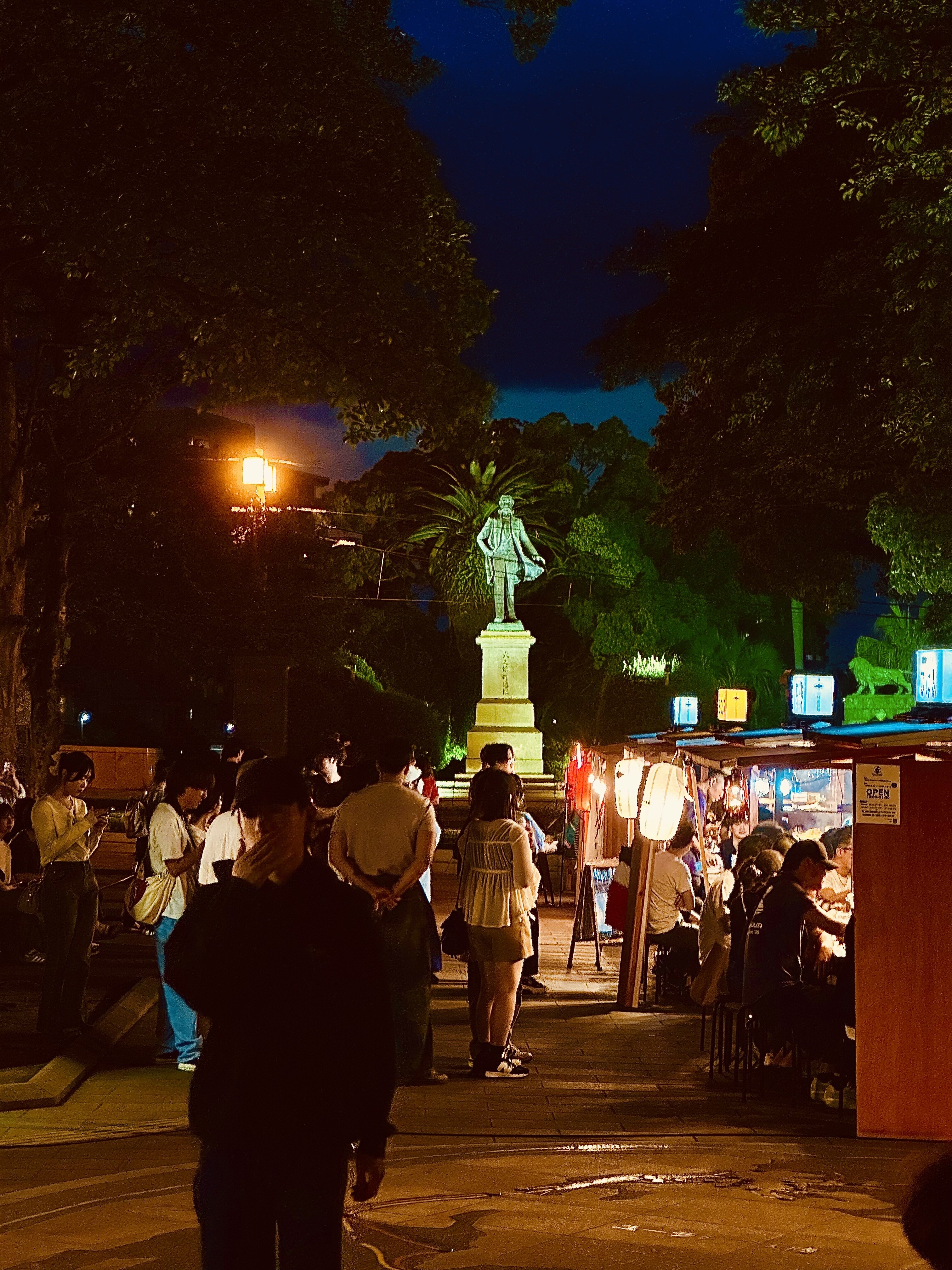 かごしまリヤカー屋台組合は「鹿児島市街地に新たな風景を創る」をコンセプトに、鹿児島の食や本格焼酎等の鹿児島の食文化を体験いただく場として甲突川左岸緑地(大久保利通銅像向かい/維新ふるさとの道)を会場に、2025年5月から毎月月末月初の定期開催(各回10日間程度)にて実施し、賑わい創出や鹿児島市中心地におけるナイトタイムエコノミーにつながる活動を行ってきました。