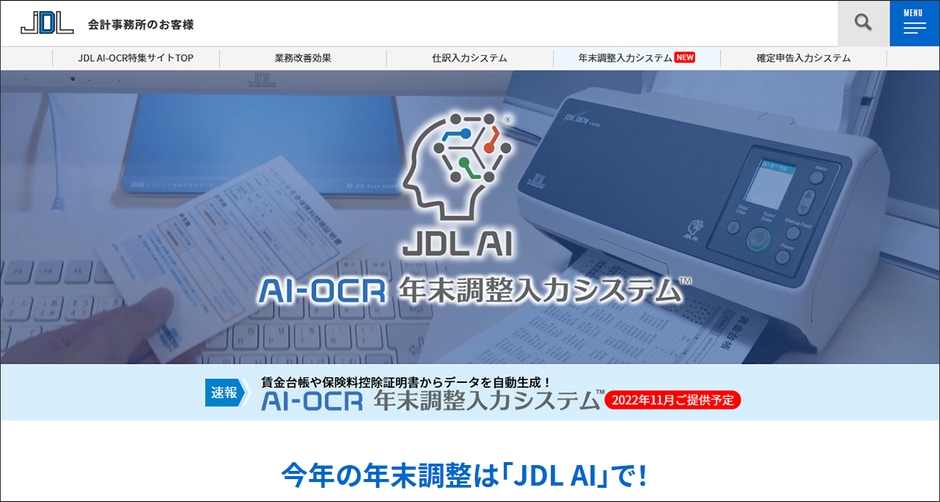 新登場「AI-OCR年末調整入力システム」(JDL AI-OCR特集サイト)