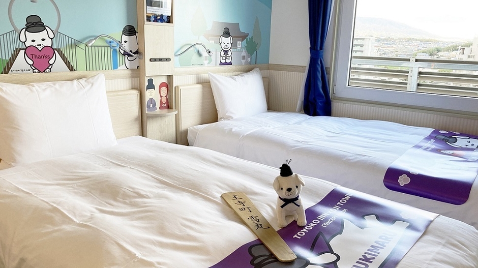 「雪丸」は奈良県王寺町の公式マスコットキャラクターで、実在したと言われる聖徳太子の愛犬がモチーフになっています。世界で1室の「雪丸のおへや」では、東横インのブランドカラー“toyoko blue”におめかしした雪丸と記念撮影ができます。