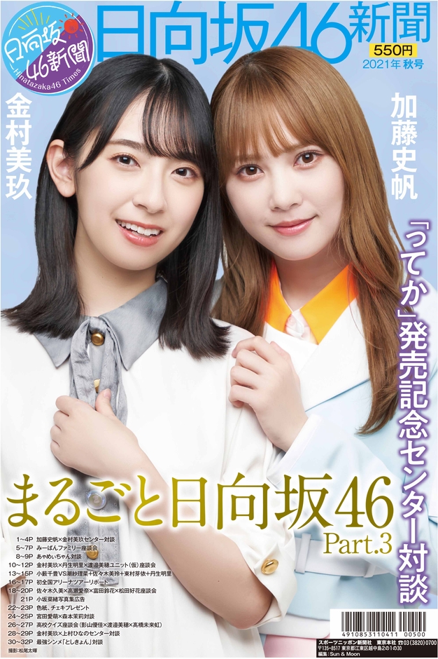 コンビニエンスストアなどで販売する通常版<タイプA>のダブル表紙は、今号巻頭で新旧センター対談を行った加藤史帆、金村美玖(1面)、「最強シンメトリーコンビ」の加藤史帆、齊藤京子(終面)です。