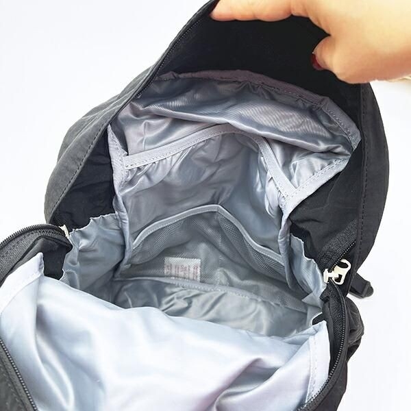そして、大き目バッグなのに小さく収納もできてしまう優れものです。フロントポケットに折りたたんで収納できるパッカブル仕様になっています。