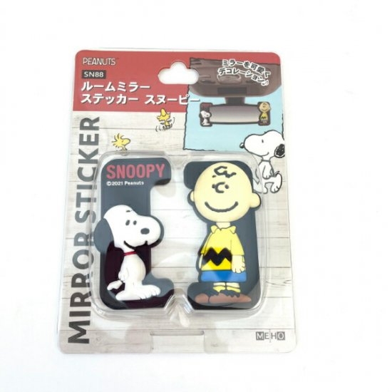 こちらはルームミラー用のステッカーです。スヌーピーとチャーリーブラウンが2つで1セットになったアイテム!どうやって使用するかというと、、、