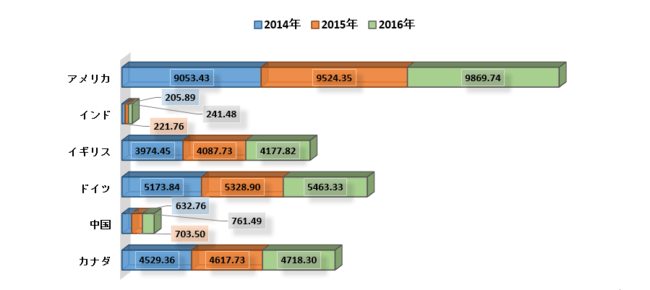 一人当たりの医療費、PPP(米ドル)– 2014-2016年 ソース:WHO