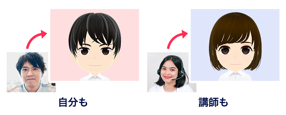これにより、講師からの視線や自分の表情を気にすることなく、「英語で会話すること」そのものに集中することができます。