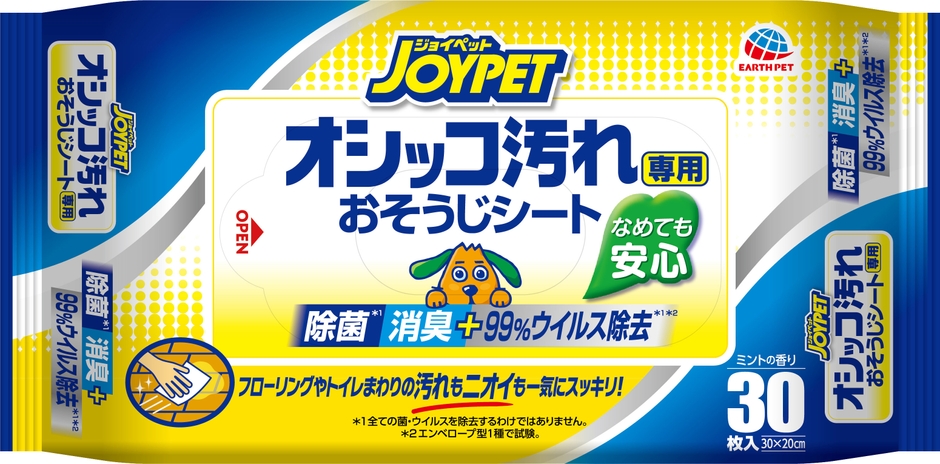 アースグループにおいてペット事業を展開するアース・ペット株式会社(本社:東京都港区新橋4-11-1/代表取締役社長:長田 俊之)は、『JOYPET オシッコ汚れ専用おそうじシート』を2023年3月1日(水)にリニューアル発売いたします。
