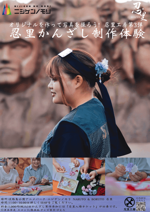 『うずまきナルト誕生祭』の第5弾では、大好評開催中のクラフト体験イベント「忍里オリジナルかんざし製作体験」にて、完成した“かんざし”を持ち帰るための巾着袋に2種類の新デザインが追加となります。