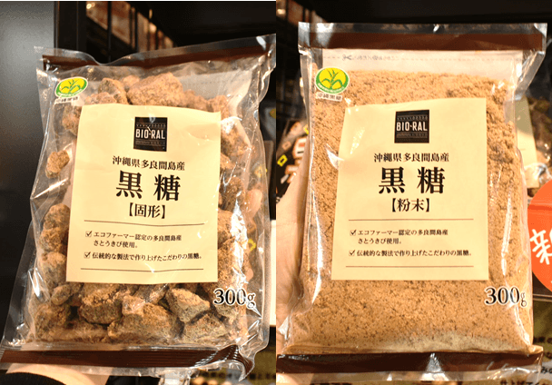 沖縄県多良間島産のさとうきびを使用。伝統的な製法で作られており、風味豊かなこだわりの黒糖。固形タイプと、料理に使用しやすい粉末タイプ。