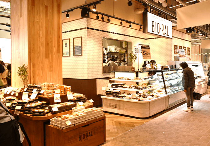 「ビオラル国立駅前店」は国立ならではの地元のおすすめ商品を多数展開するほか、駅前店舗という立地から即食需要が高いと予測し惣菜の対面量り売りコーナーのメニューを充実させ、食品添加物になるべく配慮したこだわりの弁当など豊富に取りそろえます。
