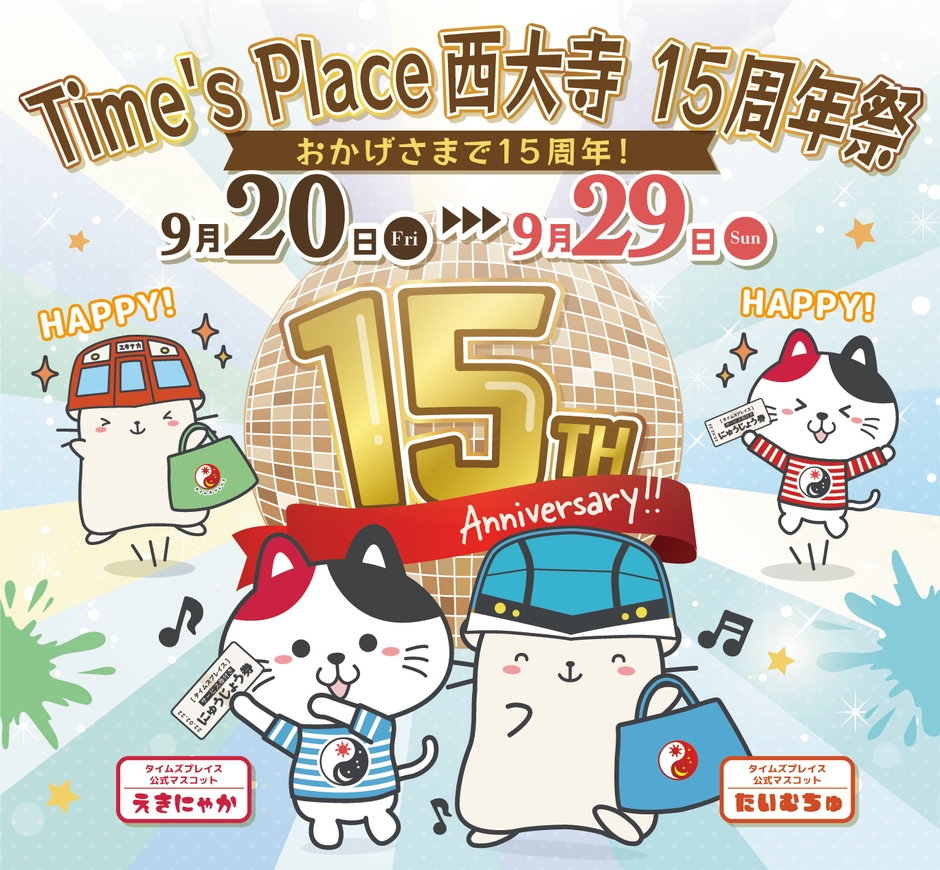 株式会社近鉄リテーリングは、9月20日(金)から9月29日(日)までの間、駅ナカショッピングモール「Time’s Place 西大寺」(タイムズプレイス サイダイジ)」にて、「15周年祭」を開催します。