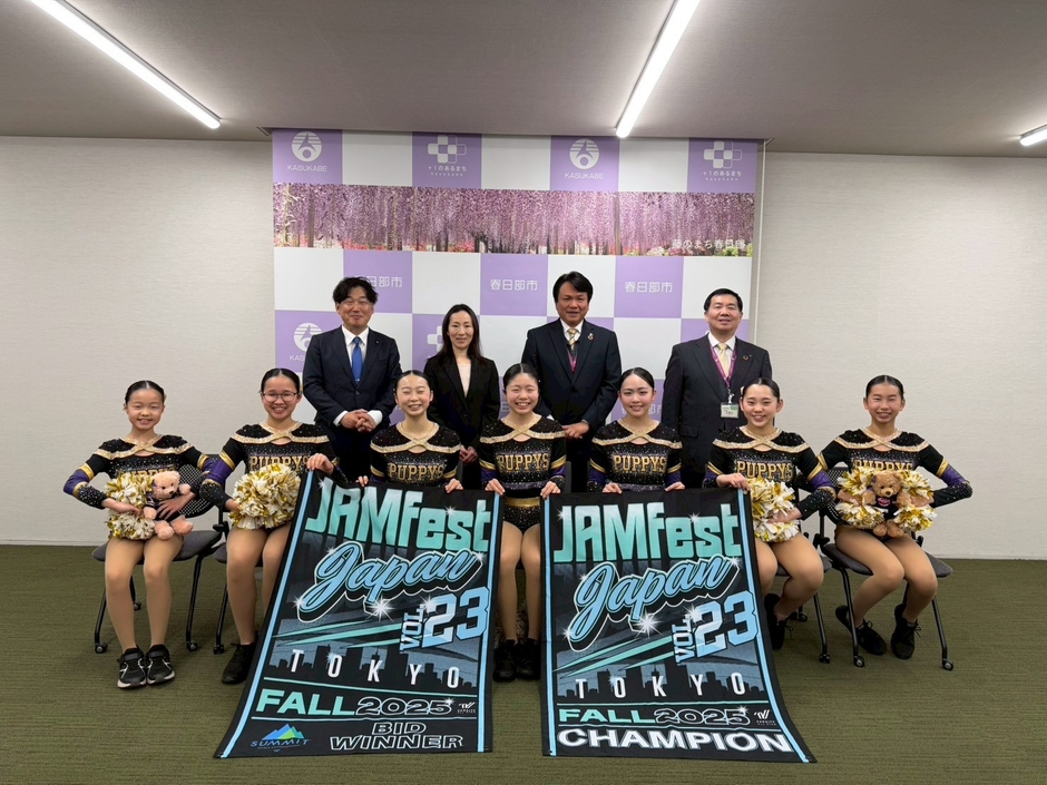 埼玉県春日部市の小中学生チアダンスチーム「POM PUPPYS bright」(代表:今井愛)のメンバー7名は2月4日、春日部市役所を訪問し、岩谷一弘春日部市長に全国1位獲得と世界大会出場を報告しました。