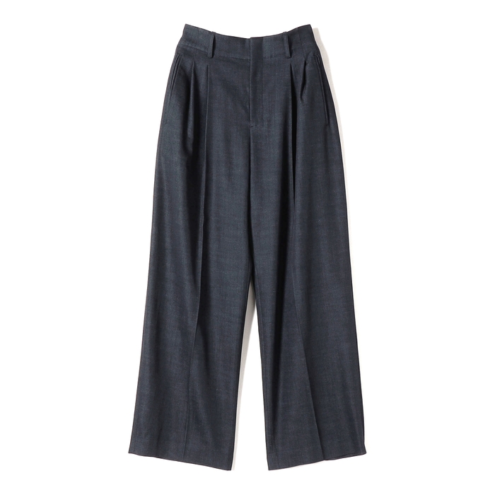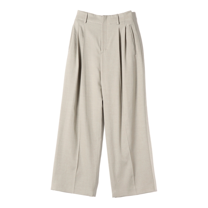 シンプルながらも股下や腰回りのシルエットバランス、背面のギャザーに拘った一着。
